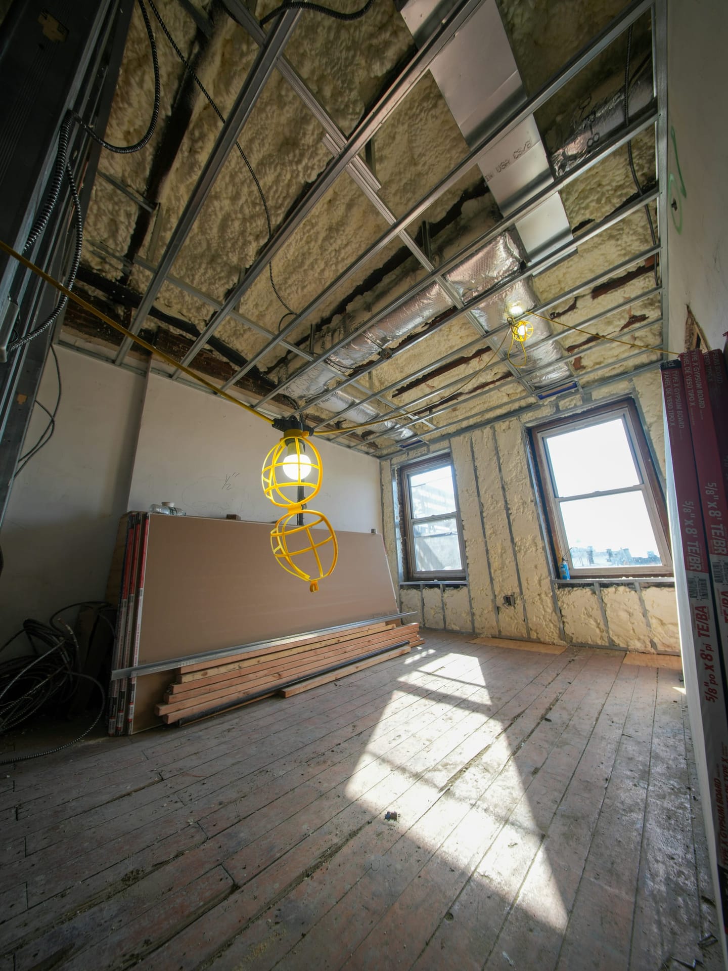 Complete structural tear-downs require meticulous coordination of overhead HVAC ducting, electrical routing, and high-efficiency spray-foam envelope sealing before a single sheet of drywall is hung.